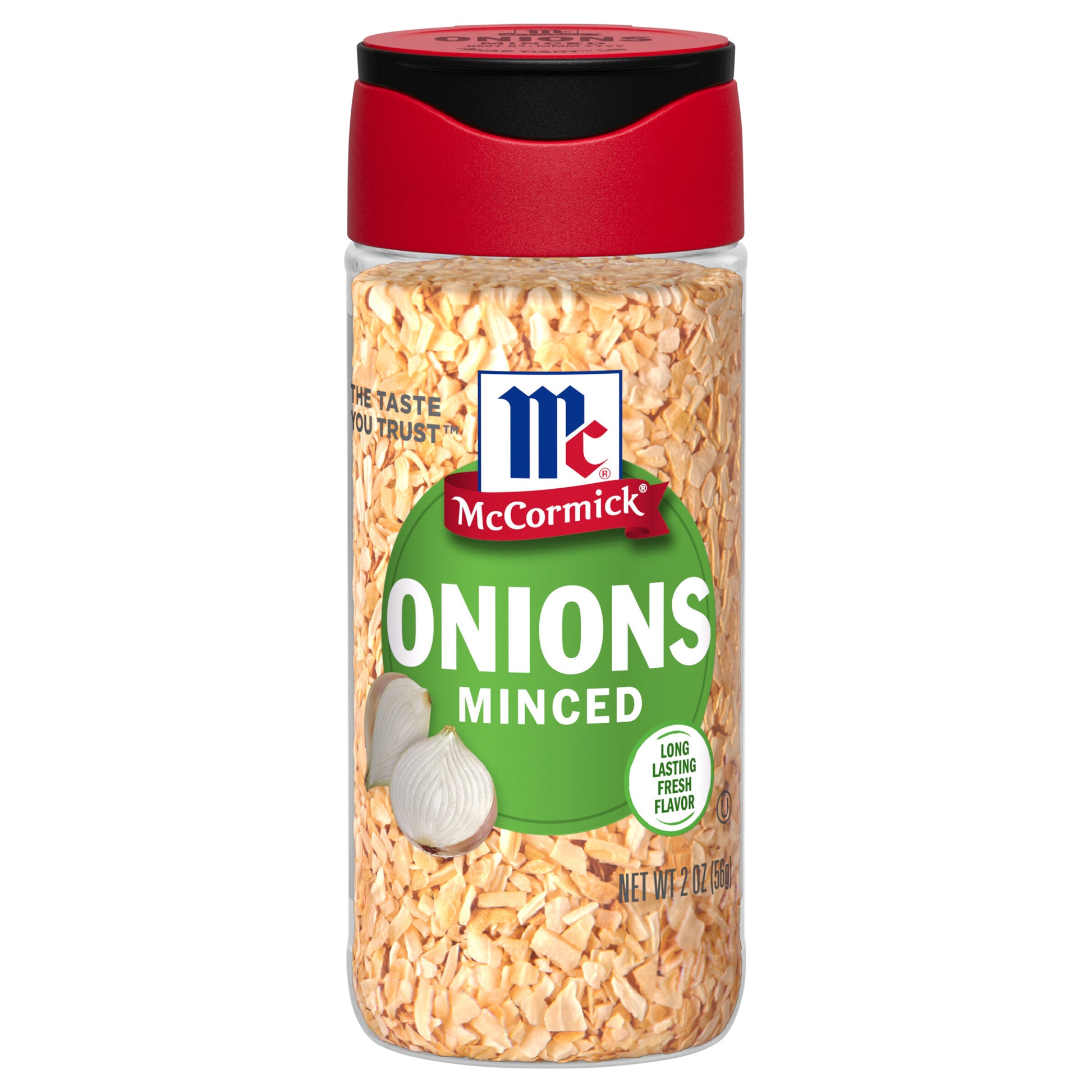 McCormick® Minced Onions add savory richness to pot roast, beef stew, chicken soup, casseroles and more. It makes dinner preparation a cinch - no peeling or chopping of onions needed and no watery eyes. Our Minced Onions begin as whole, white onion bulbs which are then peeled, dehydrated and minced. This pantry staple adds toasty onion flavor to so many types of dishes. Add with the breadcrumbs when you make meatloaf and meatballs. Try minced onions in tuna, potato or pasta salad. Great for onion soup, onion dip, salad dressings, marinades and seasoning rubs for roasts. Or, stir it into your pasta sauce for an extra flavor boost. For any recipe calling for fresh onions, try 3 tablespoons Minced Onions in place of ½ cup chopped fresh onions.